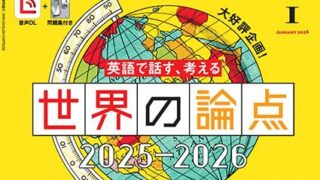 英語を学ぼう英語を学ぼう!「CNN ENGLISH EXPRESS 2026年1月号」 英語を習得するには、然るべき時間とたゆまぬ努力が必要となる。英語力向上のキーワードは、「日々の継続」であり、そのために、自分に最適な「学習ツール」を見つけることである。ところで、リアルなニュース英語を素材としつつ、語彙の詳細な解説など工夫満... 2025.12.13英語を学ぼう