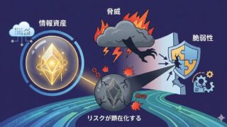 IT系情報セキュリティマネジメント試験対策(2)「情報資産・脅威・脆弱性」 情報資産・脅威・脆弱性情報資産=だいじなもの、脅威 = それを脅かすもの、脆弱性 = 脅威がつけいる隙。 三つが揃うと、リスクが顕在化するどんな情報資産があるかわかってないと始まらない。 資産管理台帳で把握する。不正のトライアングル=機会、... 2026.03.07IT系情報セキュリティマネジメント試験資格試験