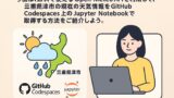 Codespacesは、事前に構成された開発環境を提供するが、Jupyter Notebookは通常、VS Codeの拡張機能として導入する。